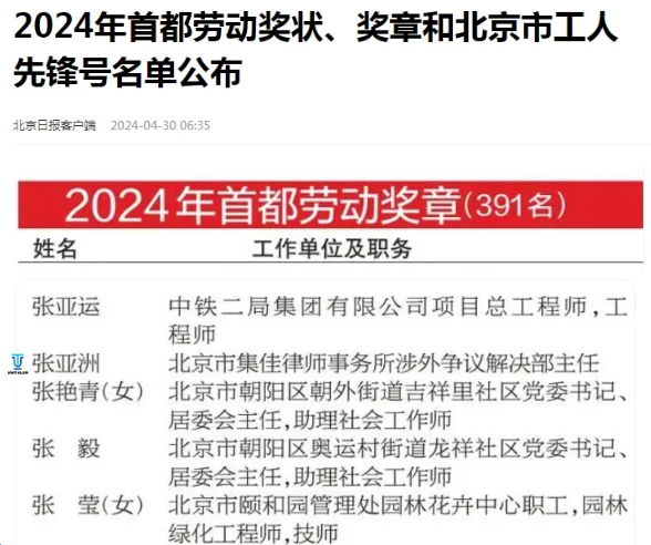 在五一劳动节来临之际,北京日报公布了“2024年首都劳动奖状、奖章和北京市工人先锋号”名单,该评选由北京市总工会、北京市人力资源和社会保障局组织,旨在弘扬劳模精神、劳动精神和工匠精神。集佳合伙人张亚洲律师荣获2024年首都劳动奖章,是首都司法行政系统获此荣誉的4名先进个人之一!